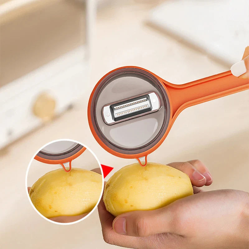 Quanto tempo você já perdeu limpando cascatas espalhadas pela cozinha? Com o Descascador de Legumes com Coletor de Casca, a sujeira é coisa do passado!